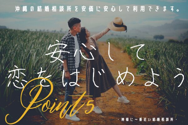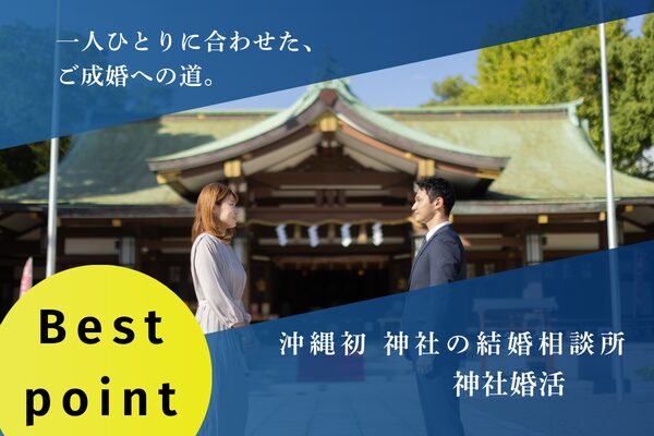 沖縄・那覇の神社 沖宮 を舞台にした結婚相談所です。神職と婚活カウンセラーが協力し、会員の皆さまの出会いから成婚までをサポートします。婚活パーティーやイベントではなく、会員登録制の本格的な結婚相談所です。神社という落ち着いた場所で、真剣に結婚を考える方の出会いを大切にしています。