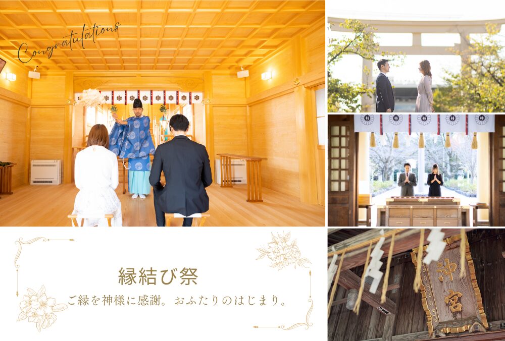 ご成婚が決まりましたら、神社にて**ご成婚神事(縁結び祭)を執り行います。 これから始まる新しい人生が、幸せなものとなるよう祈願いたします。 お二人の新しい門出を神様にご報告する、沖宮ならではの大切な神事です。