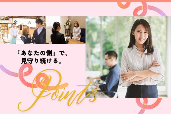 神様に見守られるこの場所で、皆さまに寄り添う心強いパートナーとして、新しい人生のご縁をお手伝いしていきたいと考えています。皆さまに素晴らしいご縁が訪れることを、心よりお祈りしております。